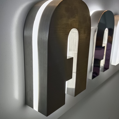 Personalizado al aire libre interior iluminar carta empresa logotipo 3D canal letra Metal espejo superficie LED retroiluminado letra signo
